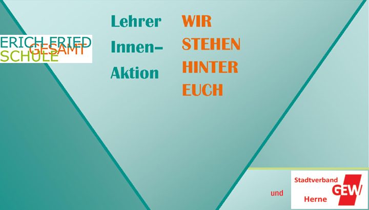 Die GEW Herne unterstützt die Schüler*innen-Aktion „Vergesst uns nicht“ und die begleitende Aktion des Kollegiums der EFG Herne „Wir stehen hinter Euch“.